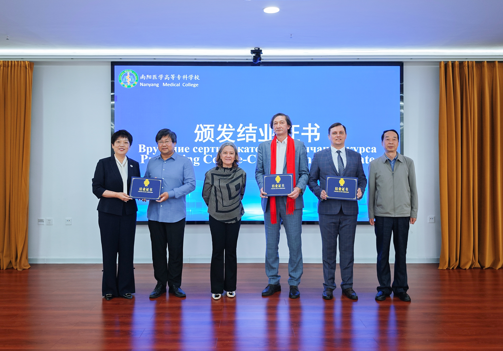 本网讯(文/对外合作交流处 夏灵果)4月25日,南阳医专2025年第二批中医适宜技术国际培训(俄罗斯班)结业典礼在仲景文化中心719室举办。校长范真出席并致辞,副校长刘荣志和菲律宾伊密里欧学院副校长米兰达博士为学员颁发证书。纪委书记刘金云主持。