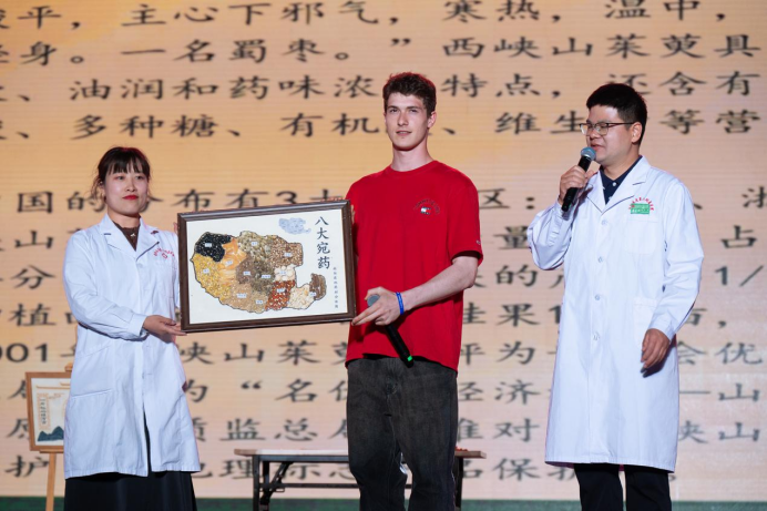 演出以《花球表演》开场,将传统养生操与现代韵律巧妙融合。诗朗诵《跨越山海的生命之约》以44年援非医疗为叙事轴心,再现我校师生在非洲大地书写的大爱篇章。快板《仲景故里唱新声》运用传统曲艺形式,展现学校在职教出海、“仲景工坊”国际化发展的成效。情景剧《中医之光 闪耀国际》以俄罗斯留学生Sadaev Aslanbek的沉浸式体验为主线,搭建起中医药文化国际传播的桥梁。《相亲相爱》以“各美其美,美美与共”的生动实践,诠释人类命运共同体理念。压轴节目《医圣颂》以时空对话形式重现张仲景“勤求古训,博采众方”的治学精神,让医圣文化穿越千年依然激荡人心。