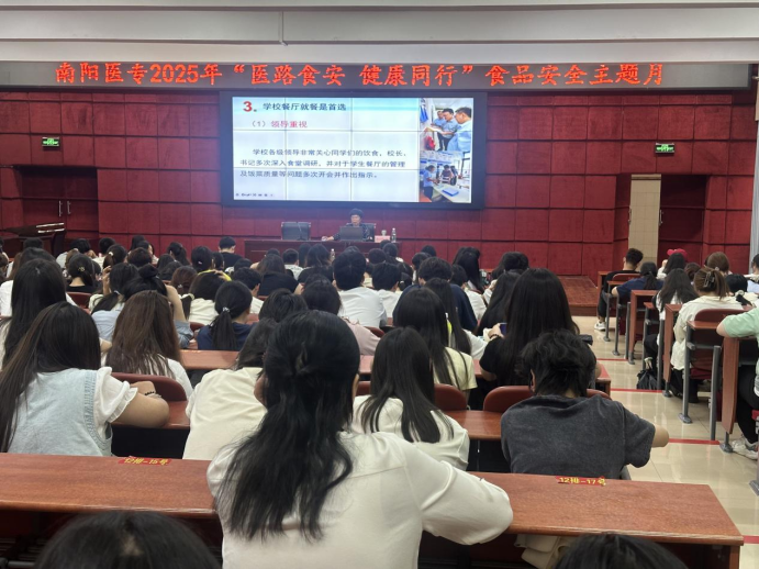 本网讯(文/团委 刘鑫)5月13日,我校举办“医路食安,健康同行”食品安全专题讲座。校党委委员、工会主席杜晓平出席,各系(院)200余名学生代表参加。会议由校团委书记董菡主持。