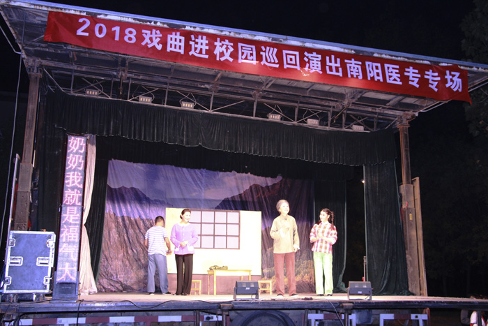 本网讯(文/宣传部 张旭斌)10月21日晚,河南省2018“戏曲进校园”巡回演出在我校主校区篮球场精彩上演。校党委宣传部、学生处、各系(部、院)相关负责人及2018级全体学生6000余人观看了演出。
