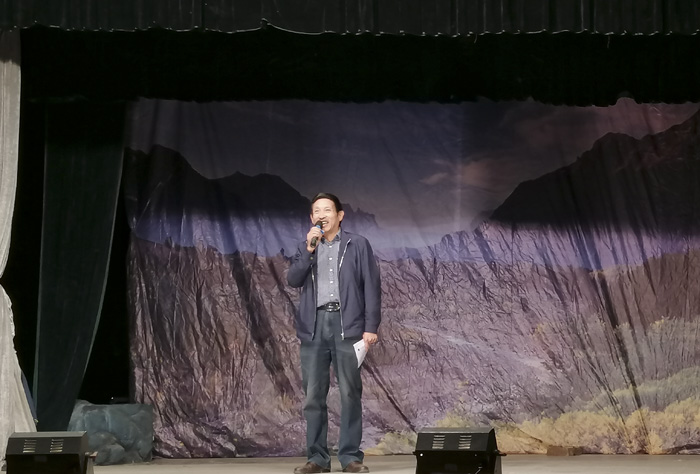 校党委宣传部部长王永科为演出致辞,他首先对省越调剧团演职员的光临表示热烈欢迎和衷心感谢,并阐述了开展戏曲进校园活动的重要意义,他希望同学们通过戏曲感受中国传统文化的博大精深,体会传统文化的独特魅力和风采,从而净化心灵,弘扬社会主义核心价值观、增强民族自信心。