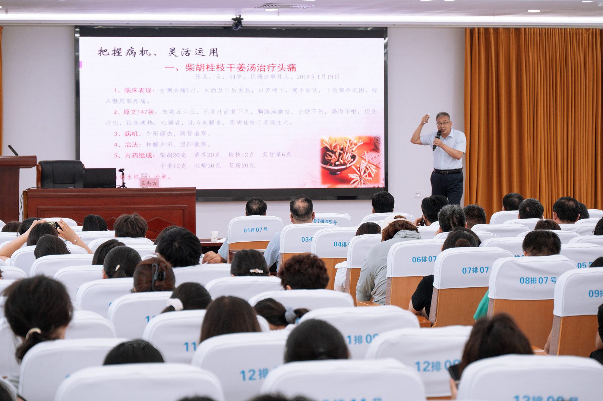 本网讯(文/中医系 别玉龙)6月11日下午,邓州市中心医院业务院长、我校客座教授王杰方,在仲景文化中心719报告厅作“经方临床应用的体会”学术讲座。校党委书记柳明伟、校党委副书记刘涛出席,学校相关部门负责同志和300余名师生代表参加。讲座由副校长刘荣志主持。