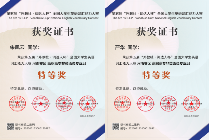 本网讯(文/国际教育学院 朱晗)近日,由中国外语战略研究中心、中国外语教材与教法研究中心和上海外语教育出版社联合主办的第五届“外教社·词达人杯”全国大学生英语词汇能力大赛全国决赛圆满落幕。我校斩获国赛二等奖1项,省赛特等奖2项,一等奖7项。