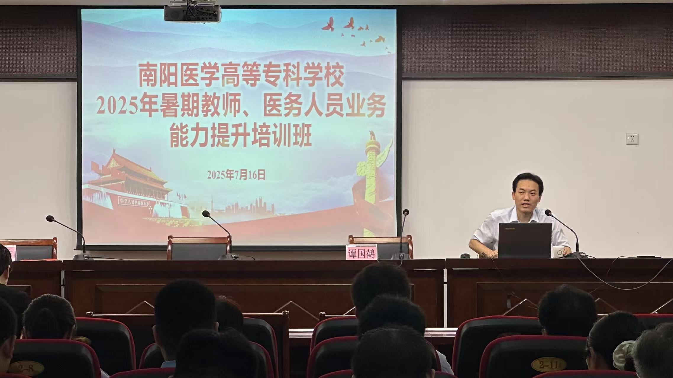本网讯(文/教务处 李梦华 樊冰)7月16日上午,学校开展2025年暑期教师、医务人员业务能力提升培训会。广西医科大学基础医学院党委书记、张仲景国医研究院学术委员会副主任委员、国家青年长江学者、博士生导师谭国鹤教授受邀作专题辅导。校长范真出席,学校相关部门负责同志、各系(部、院)教师代表及三所附属医院相关科室人员参加此次培训。会议由副校长刘荣志主持。