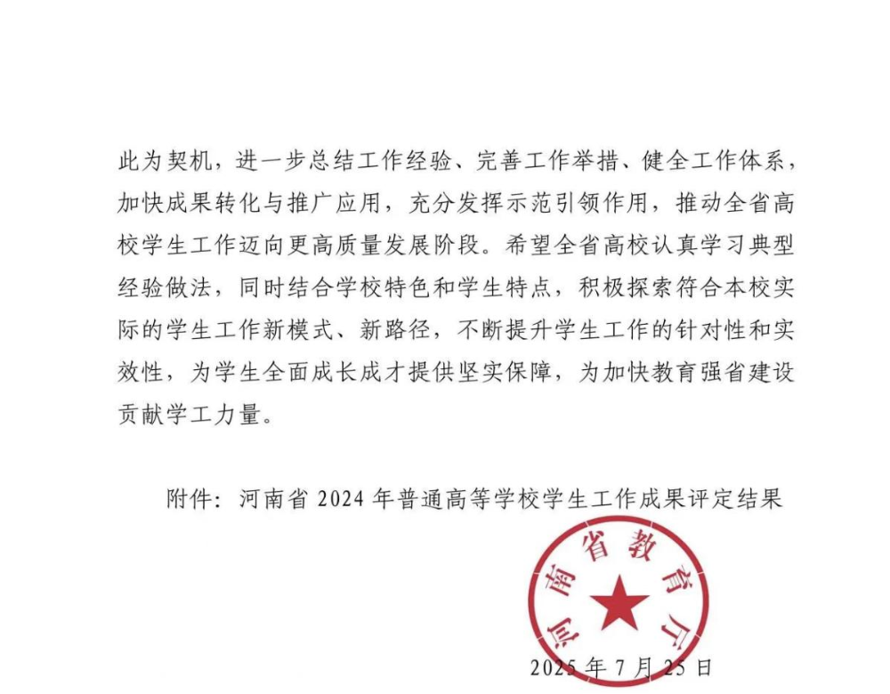 本网讯(文/心理健康关爱与教育中心 李孟辉)近日,我校申报的《“点亮心灯”公益引领,“五心联动”育心赋能》在河南省2024年度普通高等学校学生工作成果项目评选中荣获一等奖。