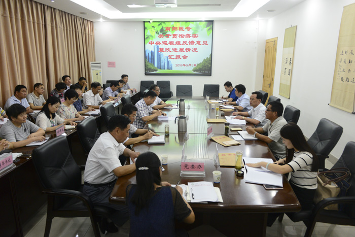 汇报会在办公楼2号会议室进行,校领导和校党委各职能部门负责人、涉学系部党组织书记以及三所附院党组织书记参加了会议,会议由校党委副书记、校长方家选主持。