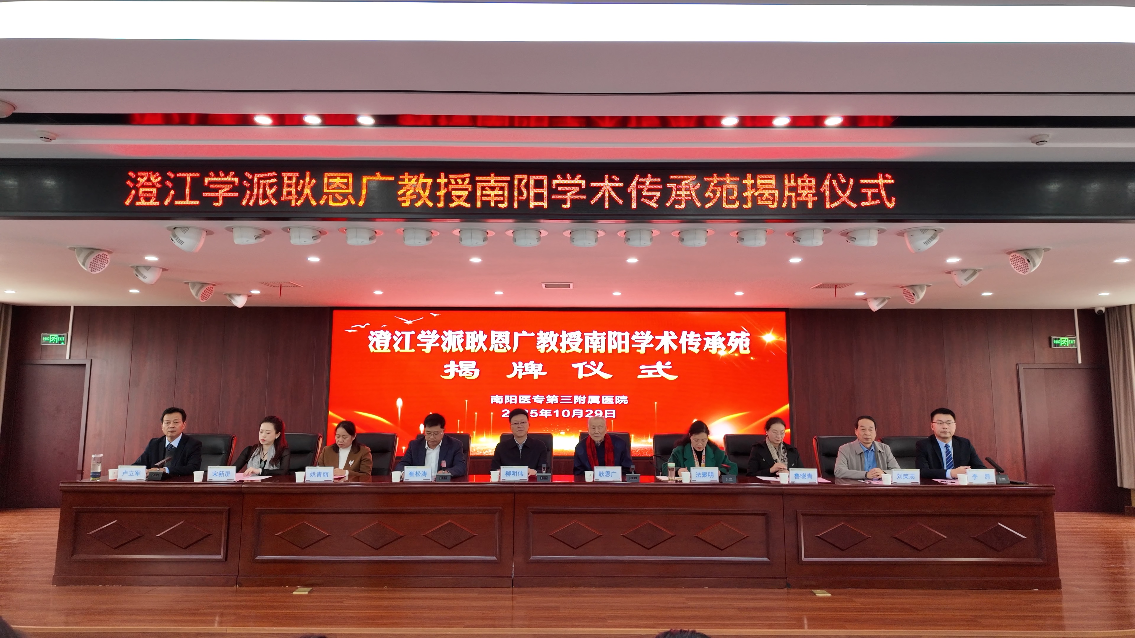 本网讯(文/三附院 韩冰)10月29日,澄江学派耿恩广教授南阳学术传承苑揭牌仪式暨全市中医适宜技术(特色疗法类)培训会在我校三附院举行。我校党委书记柳明伟,北京中医药大学针灸推拿学院教授耿恩广,南阳市中医药管理局副局长崔松涛,南阳市城乡一体化示范区党工委委员法聚明,我校副校长刘荣志、三附院书记卢立军等领导专家出席,与京豫两地中医药同仁共同见证这一重要时刻。