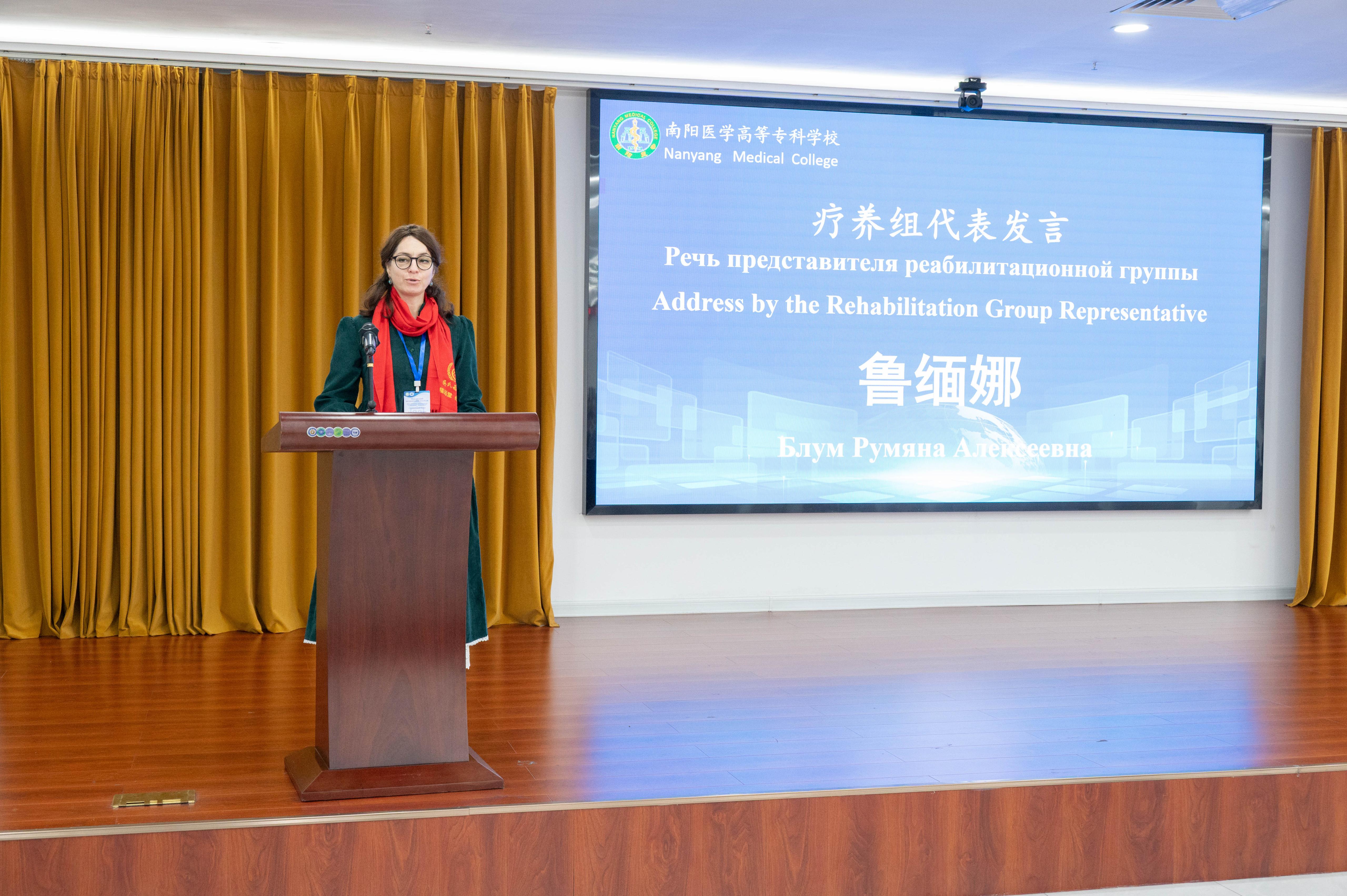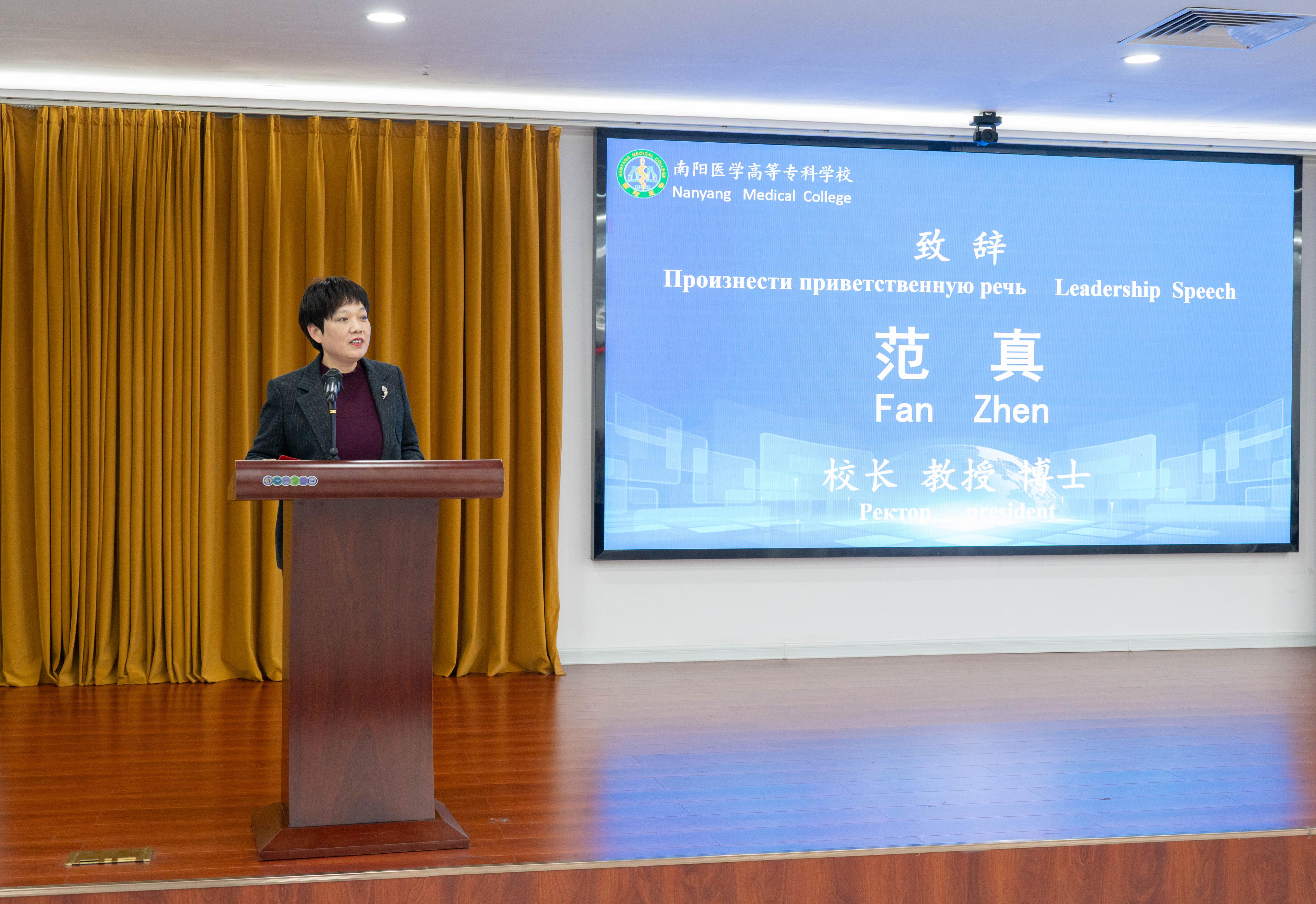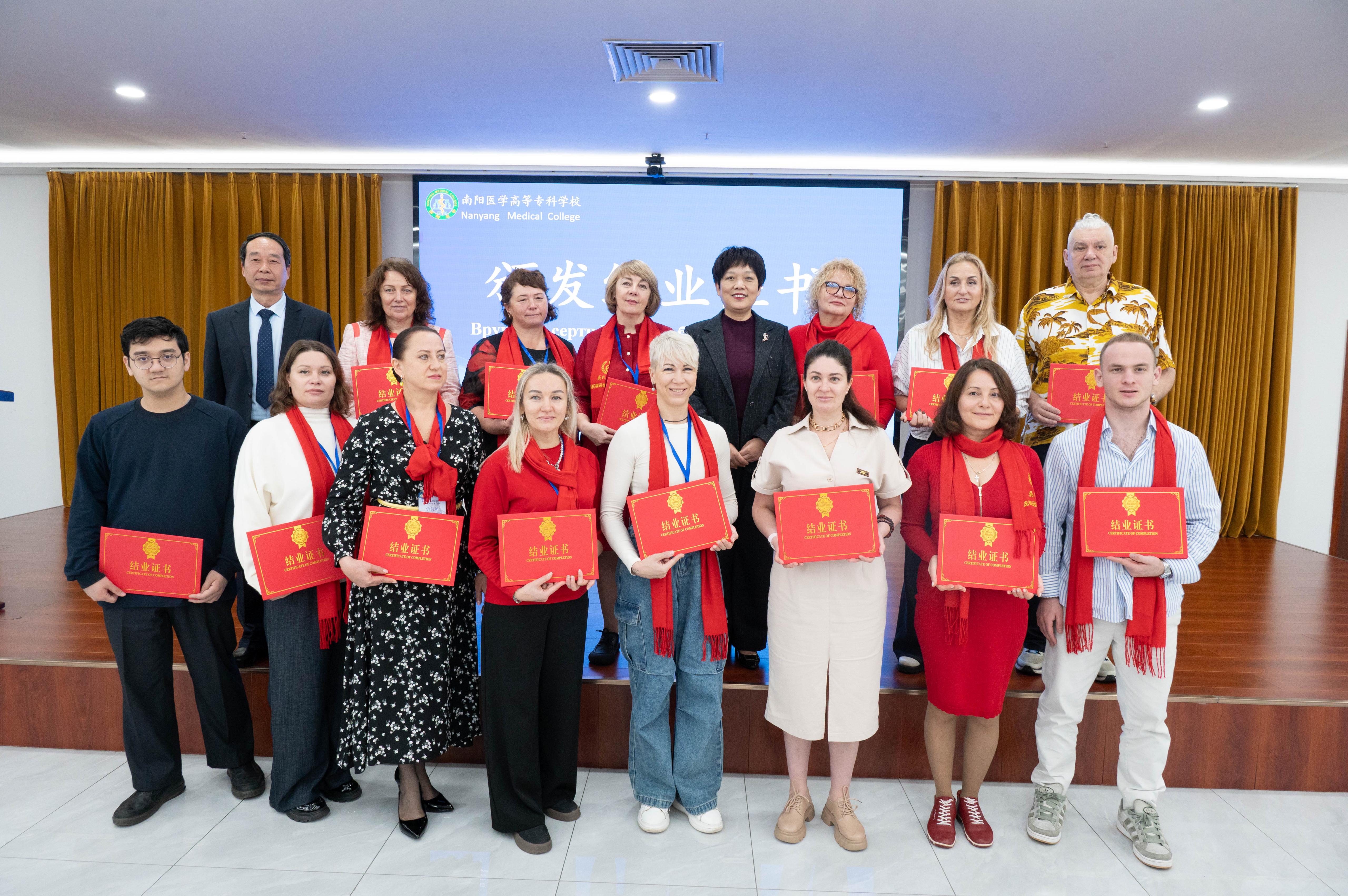 结业仪式上,范真向30余名俄罗斯学员表示祝贺并颁发证书。她指出,南阳作为医圣故里,拥有深厚的中医药文化底蕴,学校立足这一区位优势,打造职教出海品牌——“仲景工坊”中医适宜技术国际培训,是推进我校教育高水平对外开放和中医走向世界的务实行动,强调要积极拓展海外“朋友圈”,让“仲景工坊”在更多国家落地生根、开花结果,使中医造福更多国家民众。
