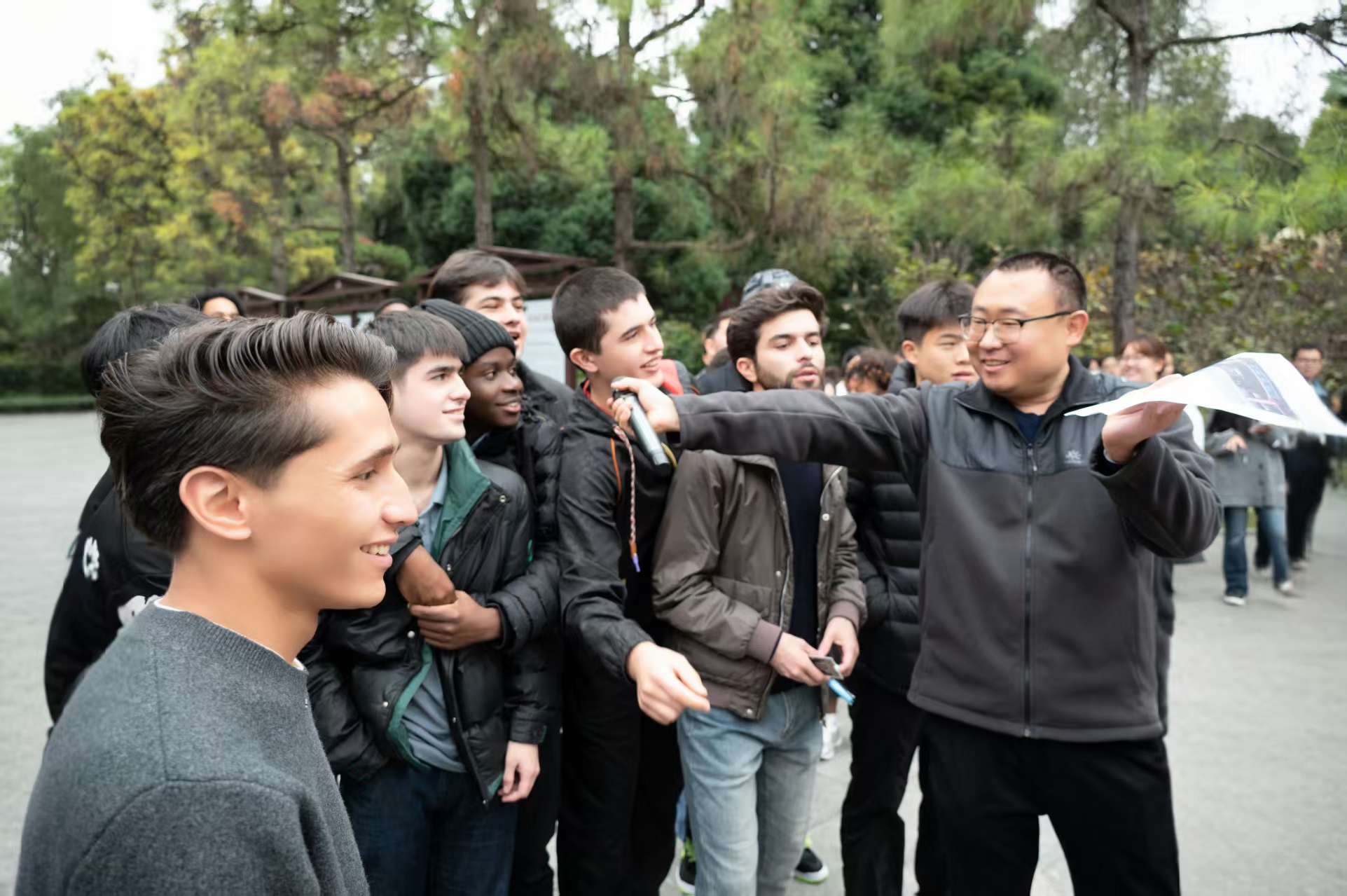 范真在致辞中表示,学校精心策划此次活动,旨在为中外师生搭建一个共同体验、相互学习的文化交流平台。通过沉浸式的文化体验,让大家在武侯祠的实地探访中,深切感受三国故事的独特魅力,为外籍师生了解中国文化开启一扇生动的窗口。在感知三国智慧的同时,也希望大家能够成为传播友谊与文化的友好使者。