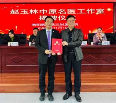 仪式现场,赵玉林、宋万新、刘荣志、卢立军共同为“赵玉林中原名医工作室”揭牌。