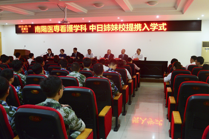 本网讯 (文/对外交流合作处周国军) 9月16日上午,我校中日合作办学护理专业开学典礼在1号办公楼5楼会议室举行,我校合作办学院校日本大阪滋庆学园常务理事桥本胜信先生一行5人应邀出席。校党委副书记逵应坤出席典礼并致辞,对外交流合作处、国际教育学院全体教职工以及中日合作护理专业的90名新生和部分家长参加了典礼。典礼由对外交流合作处处长张少羽主持。典礼结束后,桥本胜信先生与学生进行了亲切交流、和学生及家长进行了互动并现场答疑。