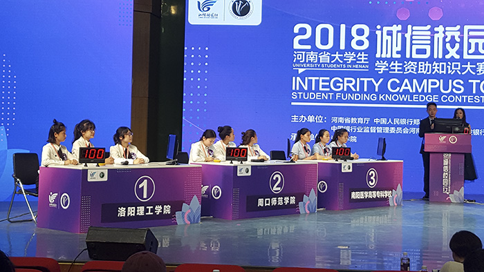 多年来,我校高度重视学生资助工作,积极参加河南省大学生“诚信校园行”系列活动,并取得优异的成绩。我校将以此次大赛为契机,进一步面向在校大学生宣传资助政策、传播征信和金融知识、强化诚信教育,引导大学生树立正确的人生观和价值观,努力提升资助育人功效,推动我校学生资助工作持续健康发展。(编审/李峰松 摄影/学生处)