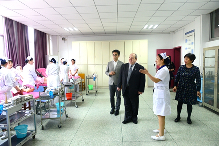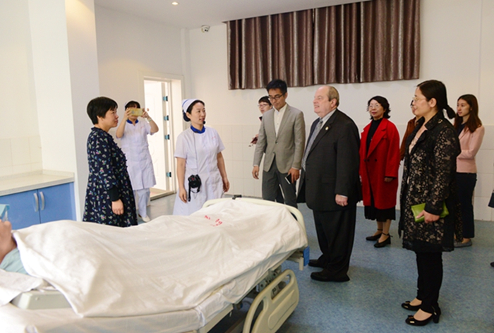 方校长和罗伯特.克拉克校长分别介绍了两校的基本情况,双方就中外合作办学项目教学管理、学生和教师交流培训、课程和学分对接等事项进行了广泛深入的洽谈,并举行合作项目签约仪式。访问期间,罗伯特.克拉克校长一行还实地考察了我校临床医学系、护理系、医技系、针灸骨伤系人体生命科学馆、中药标本馆、仲景文化特藏馆、一附院、二附院等教育教学部门和场馆。22日上午,罗伯特.克拉克校长在新东区礼堂做了一场关于美国大学教育的讲座,国际教育学院近600名师生现场聆听了讲座,许多学生积极与罗伯特.克拉克校长进行了交流与沟通。