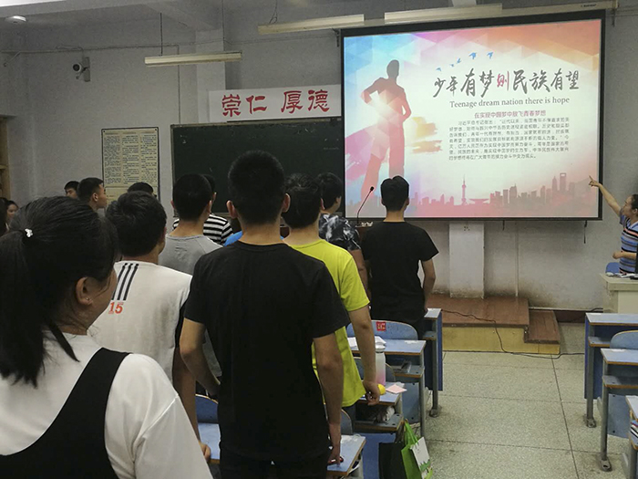 全体同学首先齐唱歌曲《最初的梦想》,大家围绕“初心”这个主题进行自我反思。随后,2016级网络班王燕同学发言,她在刚刚结束的第八届全国大学生计算机应用能力与信息素养大赛中,荣获两个个人单项一等奖。她通过分享自己备赛、参赛的经历,号召全体同学要不忘初心、勤奋学习、苦练技能,弘扬“撸起袖子加油干”的奋斗精神,努力使自己成长为建设现代化强国的合格人才。