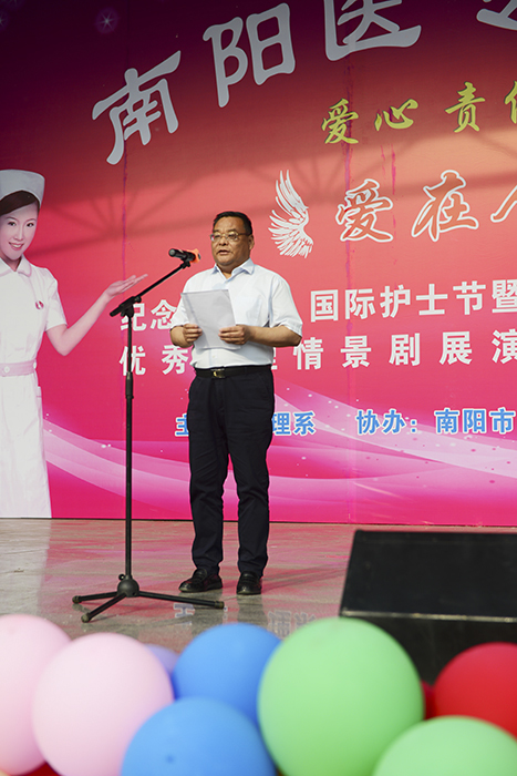 副校长逵应坤发表了热情洋溢的讲话。他在代表学校党委和行政向护理系的老师和同学们致以节日的祝贺和亲切的问候,对护理系一直以来不断深化教育教学改革、创新人才培养模式、提高专业教学质量所取得成绩给予充分肯定。他希望同学们牢记南丁格尔誓言,不断弘扬光大南丁格尔精神,在学习中修德,在实践中创新,以严谨的工作态度、精湛的护理技术,扎实履行关爱生命、维护健康的职责。