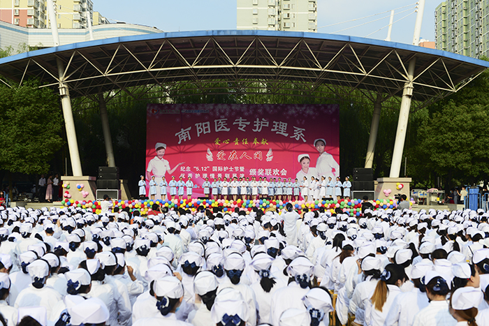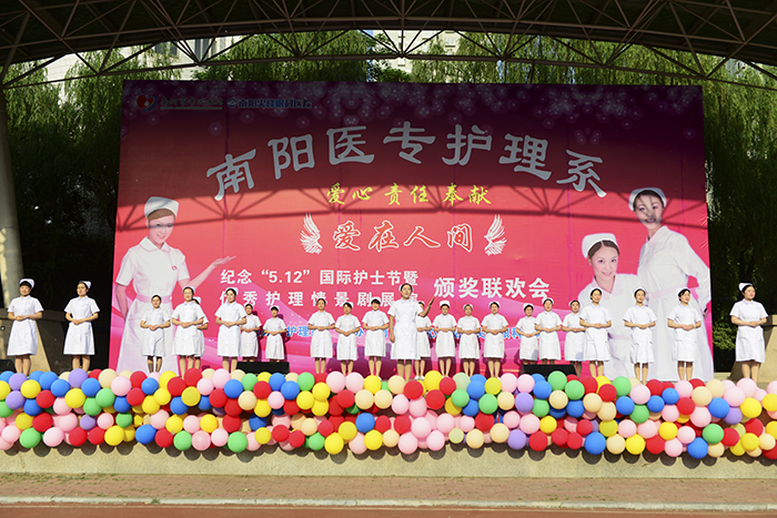 本网讯(文/护理系 李明哲)阳光明媚灿烂,鲜花芬芳娇艳,在这个美丽的五月,我们又迎来了一年一度的“5.12国际护士节”。为深入弘扬南丁格尔精神,充分激发护理教育工作者和广大护生全心全意为人民服务的工作热情,表彰奖励在教育教学和专业学习上取得突出成绩的先进典型,5月8日下午,护理系在我校田径运动场隆重举办了纪念“5.12”国际护士节暨优秀护理情景剧展演颁奖联欢会。副校长逵应坤、校纪委书记张国良、副校长郭万周、校工会主席田端、各处室领导和护理系全体师生共2000余人参加了庆祝活动。