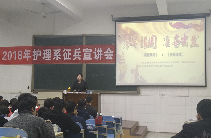 通过征兵宣讲及座谈会,使护理系学生对应征入伍的政策有了全面深入的了解,大大提升了同学们的参军热情,坚定了有应征入伍投身军营的信心和决心,为我系做好2018年应征入伍工作奠定了良好基础。(编审/李峰松 摄影/护理系)