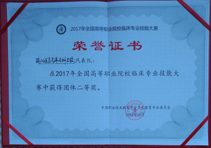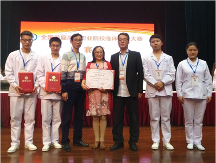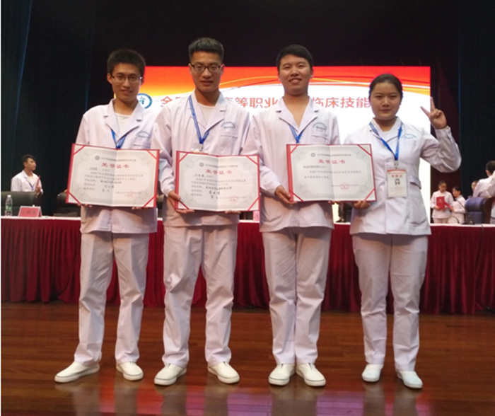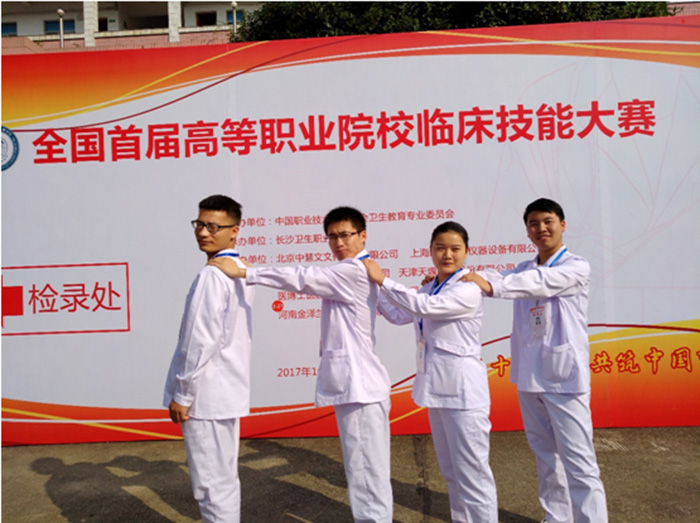 本网讯(文/临床医学系 李玲)10月27~28日,全国首届高等职业院校临床医学技能大赛在湖南长沙隆重举行,本次比赛由中国职业技术教育学会卫生教育专业委员会主办。2015级临床医学专业对口班秦君搏、陈文博、王倩倩、李伟可4位同学参加了比赛。经过紧张激烈的角逐,陈文博获“上腹部手术切口换药术”个人二等奖,秦君搏同学获“胸膜腔穿刺术”个人二等奖,在另两位同学的共同努力下,我校代表队喜获团体“二等奖”的优异成绩。