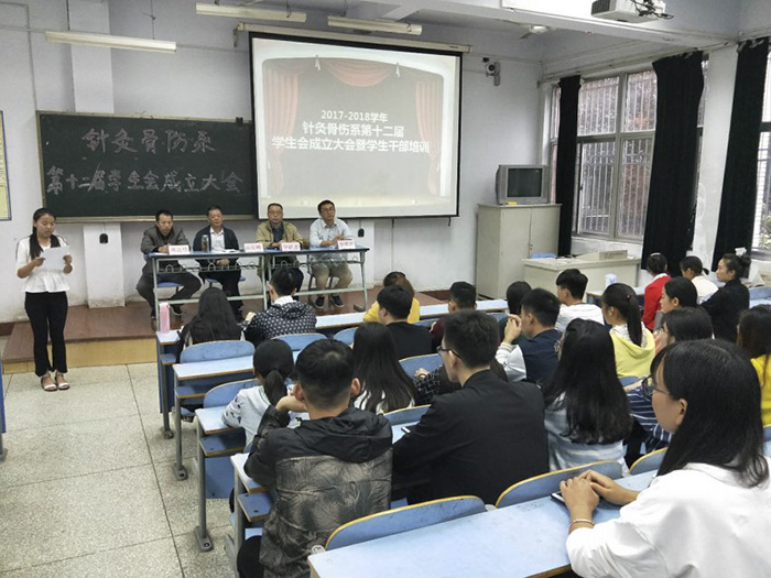 本网讯(文/针灸骨伤系 李明哲)9月27日下午,针灸骨伤系在1号教学楼南102教室成功举办第十二届学生会成立暨培训大会。针灸骨伤系党总支全体成员、辅导员、班主任及新一届学生会成员出席大会。
