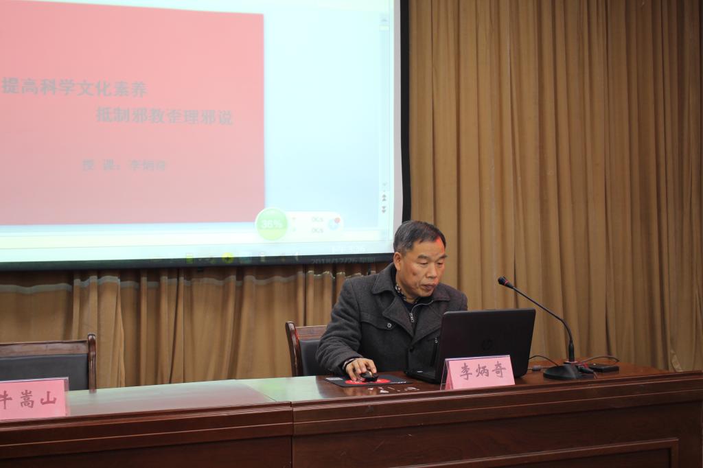 李科长以“提高科学文化素养,抵制邪教歪理学说”为题目,结合大量图文并茂的课件,从什么是邪教,邪教的特征,邪教种类简介,遇到邪教怎么办,全面系统讲解了关于邪教的知识。讲解内容丰富透彻,重点突出,既有理论深度、又有实践高度,具有很强的指导性和针对性,结合具体案事例深入浅出细致的精彩讲解,赢得了在场广大师生的高度评价。师生们纷纷表示,对邪教相关知识有了更全面更系统地了解,这也必将为我校思想道德教育工作,进一步培养学生树立正确的世界观、人生观、价值观起到积极作用。最后,李科长对我校辅导员、班主任老师如何做好防范邪教工作等方面提出了具体要求。