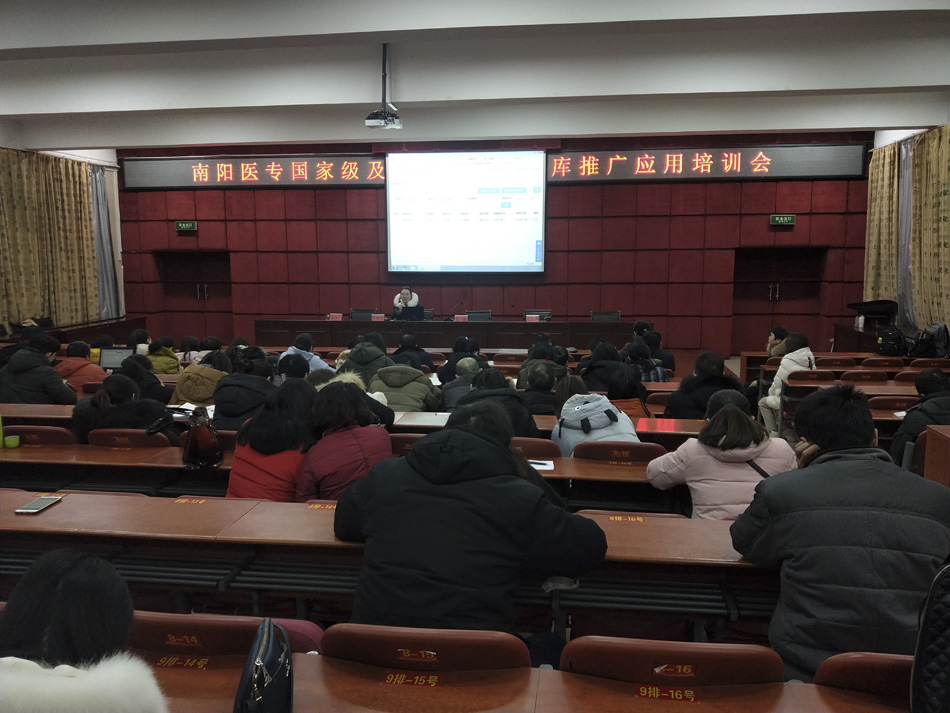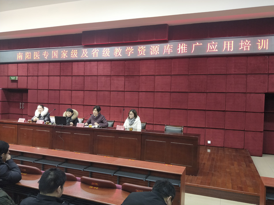 本网讯(文/教务处 刘鑫)为了推动国家级及省级教学资源库的建设和应用,迎接国家教学资源库的检查验收,2019年1月9日下午,我校在主校区图书馆五楼多媒体会议室举办“南阳医专国家级及省级教学资源库推广应用”培训会。特邀湖南中医药高等专科学校党委委员、中国针灸学会理事、教育部针灸推拿传承与创新教学资源库项目主持人陈美仁教授及团队成员莅临我校做作教学资源库推广应用培训,针灸骨伤系、医学影像技术系、中医系、临床系、基础部教师以及其他在针灸骨伤系、医学影像技术系、中医系承担专业基础课和专业课程的教师参加了培训。会议由教务处处长范真主持。