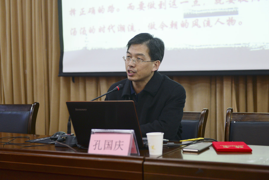 立德树人根本任务对高校教师思想政治素质和师德提出了更高的要求、第26次全国高校党的建设工作会议再次强调“加强教师队伍师德师风建设”,校党委高度重视,周密布署新年度教职工培训计划。此次培训活动邀请到了河南省“百优人才”、“省委宣讲团成员”、“省教师教育专家”、南阳师院副校长孔国庆教授作宣讲。宣讲主题为“站立时代潮头,笑迎怀才有遇——从社会核心价值中找寻人生价值实现之路”。