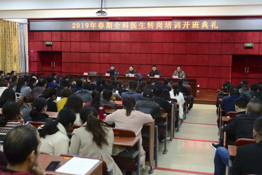本网讯(文/成教院 刘涛)3月14日上午,河南省2019年春期全科医生转岗培训开班典礼在我校图书馆五楼报告厅举行。继续教育学院院长李贞保出席典礼并致辞,400多名全科医学员参加典礼。