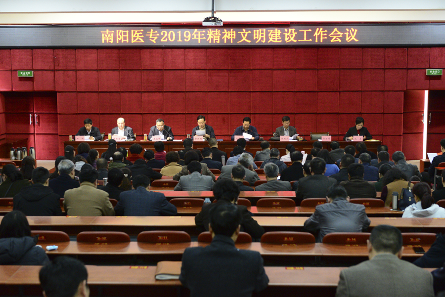 本网讯(文/宣传部 陈铁良)3月20日,我校在图书馆报告厅召开2019年精神文明建设工作会议。学校党政领导班子成员出席会议;全校及学生生活服务中心副科级以上干部、三所附院的主要领导和分管领导参加会议。会议由党委副书记、校长方家选主持。