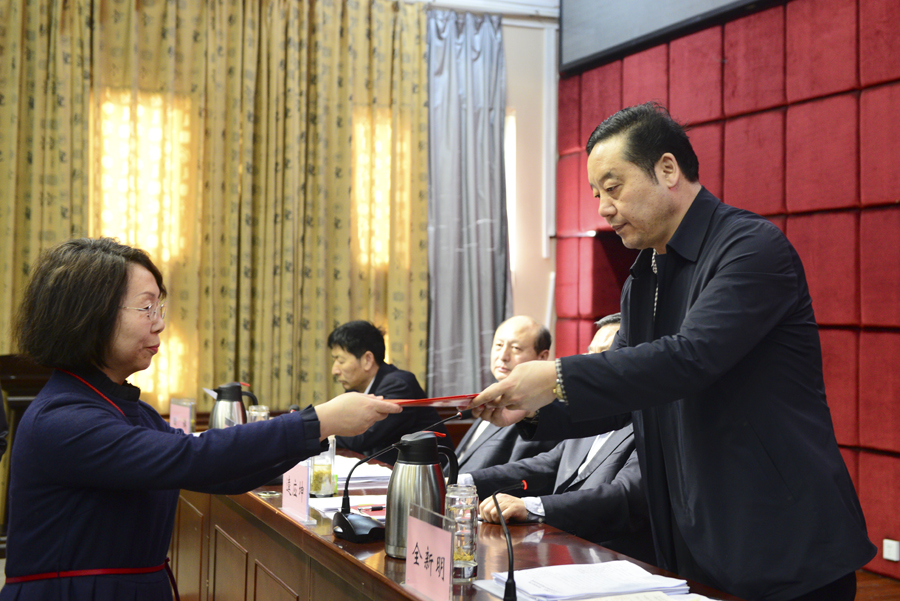 会上,党委副书记逵应坤传达了全国高校第二十六次党建工作会议精神,纪委书记张国良宣读了《关于表彰2018年度先进基层党组织、优秀共产党员和优秀党务工作者的决定》,副校长张胜海宣读了《关于表彰2018年度先进集体和先进工作者的决定》。各基层党组织书记向党委书记全新明递交2019年度党风廉政建设目标责任书,各处室负责人向校长方家选递交2019年度目标责任书。