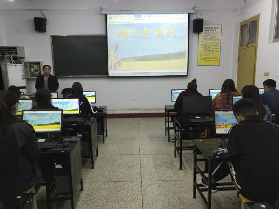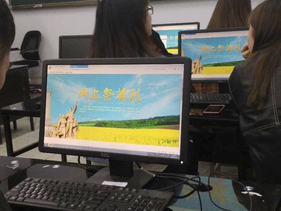 系副主任常梦星宣读倡议书,同学们在李俊杰老师的倡导下,在中国文明网的“网上祭英烈”专题上,向先烈鞠躬、献花、留言、发表祭奠感言,抒写心声体会,表达对先烈的感恩和敬仰以及缅怀和思念。同学们又通过微信平台传扬“文明清明,环保祭扫,网上祭英烈”的崇高情怀。