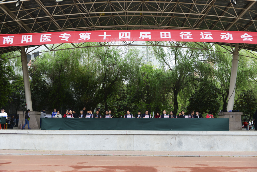 在雄壮的运动员进行曲中,国旗队、校旗校徽队、彩旗队,以及裁判员、运动员方阵依次入场。入场完毕后,全体起立奏唱《中华人民共和国国歌》。郭万周同志宣布组委会及仲裁委员会名单,逵应坤同志致开幕词。体育教学部李冰老师、临床医学系王焯阅同学分别代表裁判员及运动员进行宣誓。方家选同志宣布南阳医专第十四届田径运动会开幕。随后,由校团委组织,有体育教学部、护理系、针灸骨伤系、临床医学系、中医系、国际教育学院排练的文体表演队进行了精彩展演。