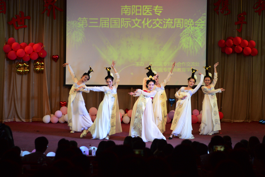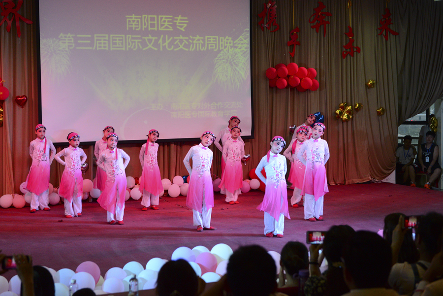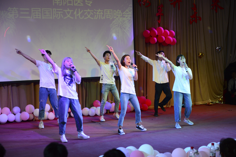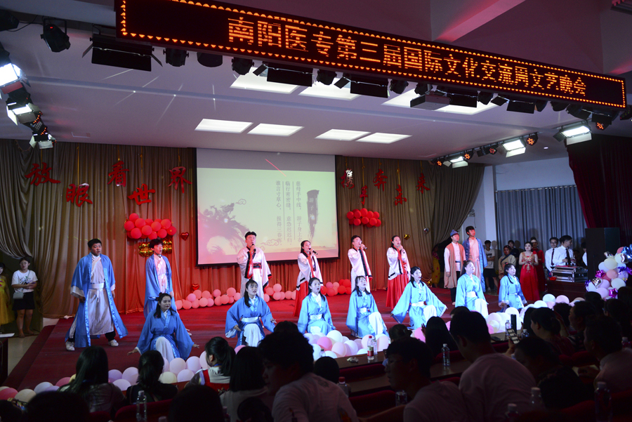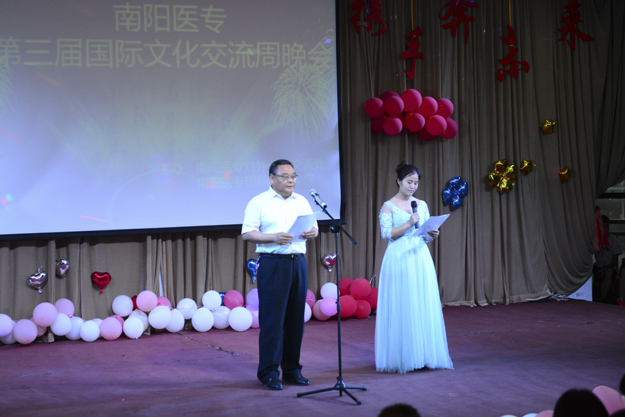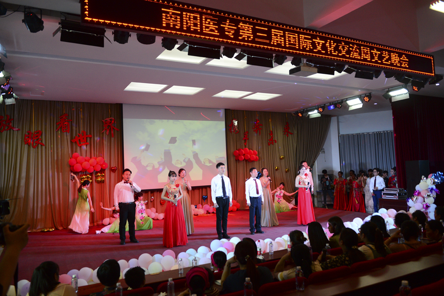 本网讯(文/国际教育学院记者站 刘洋)5月24日晚,由对外合作交流处、国际教育学院主办的南阳医专第三届国际文化交流周文艺晚会在仲景东区报告厅隆重举行。校党委书记全新明、副书记逵应坤、纪委书记张国良,副校长张胜海、郭万周,范真,工会主席田端,相关部门负责人、外籍师生、家长代表与我院师生欢聚一堂,共享文化盛宴。