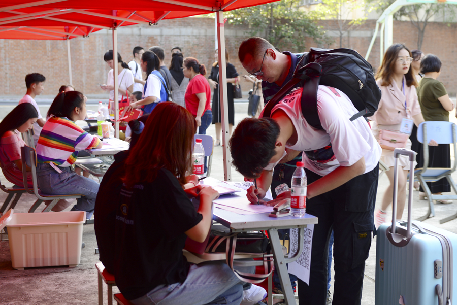 截至9月1日下午6点,本科新生49人,报到率为96.08%;普通专科新生6529人,报到率为96.45%。我校2019年招生形势喜人,持续向好。(编审/杨金运 摄影/宣传部)