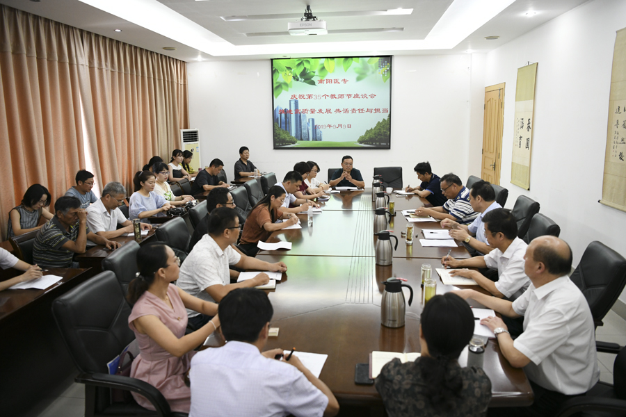 会上,党委副书记逵应坤宣读了《南阳医专关于表彰2018-2019学年优秀教师、优秀教育工作者的决定》(宛医专校〔2019〕121号),并代表校党委向全体教职员工致以节日的祝贺。各位代表在会上围绕“推进高质量发展,共话责任与担当”这一主题,结合自身教学工作实际和成长经历,畅所欲言,纷纷作了精彩发言。代表们还积极献言献策,在如何改善教学条件、提升教师待遇、实现高质量发展等方面提出了许多有价值的意见和建议,整个会议气氛融洽而热烈。