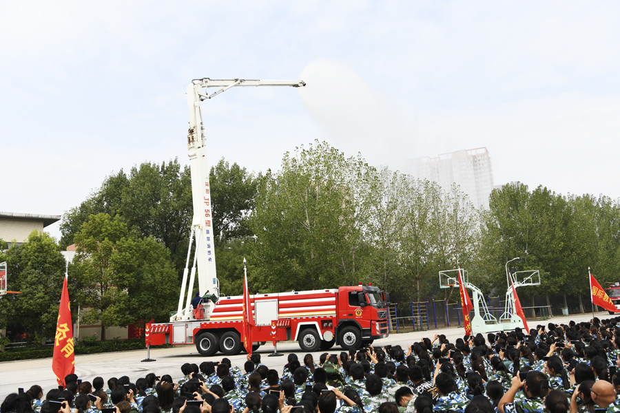 本网讯(文/保卫处 张明立)为深入贯彻落实《河南省教育厅办公室关于进一步加强全省教育系统消防安全工作的通知》,提高我校新生消防安全素质和自防自救能力,学校保卫处邀请南阳市消防支队、南阳市消防特勤中队,于9月20日在主校区开展了“消防进军训”系列活动。我校6000多名新生及部分教职工参加了培训演练。