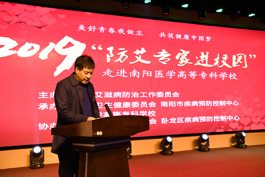 据悉,本次活动由南阳市艾滋病防治工作委员会主办,南阳市卫健委、疾控中心和我校承办,卧龙区卫健委、学生处和卫生管理系具体实施。新闻媒介对现场进行了电视和网络直播。(编审/李峰松 摄影/宣传部)