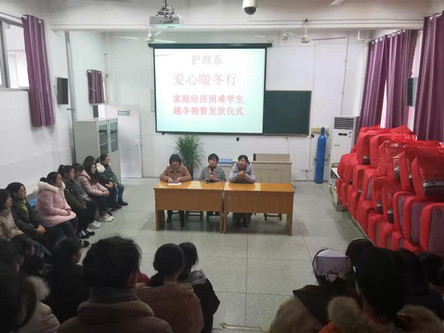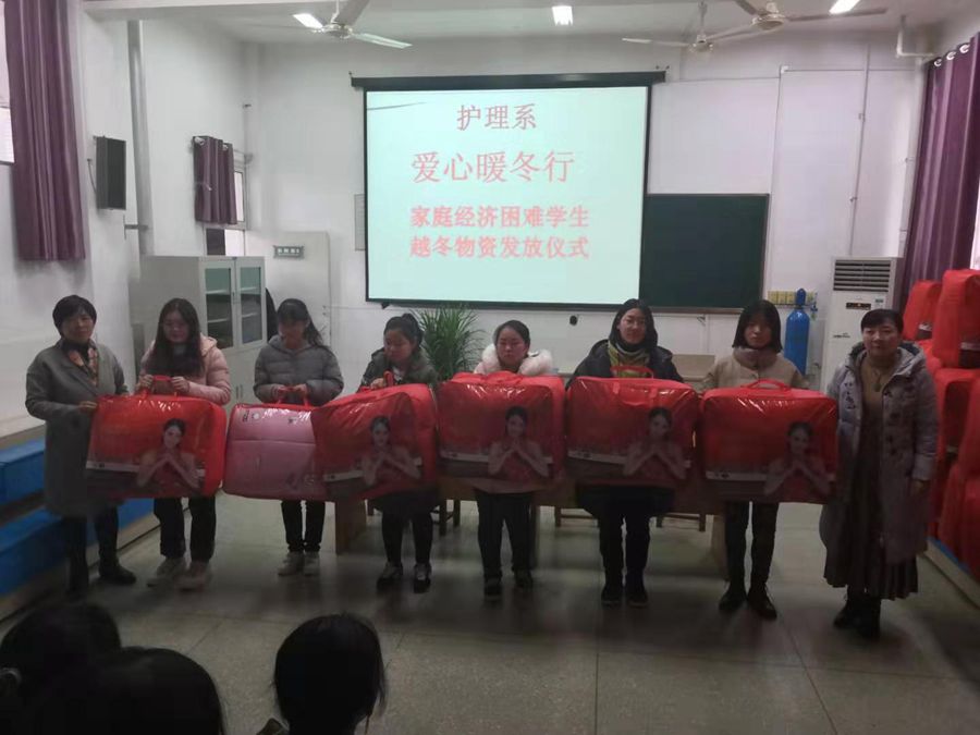 本网讯(文/护理系 程方)寒冬已至,真情暖心。1月7日下午,护理系在2号教学楼四楼示教室举办“爱心暖冬行”活动,为家庭经济困难学生发放越冬棉被。