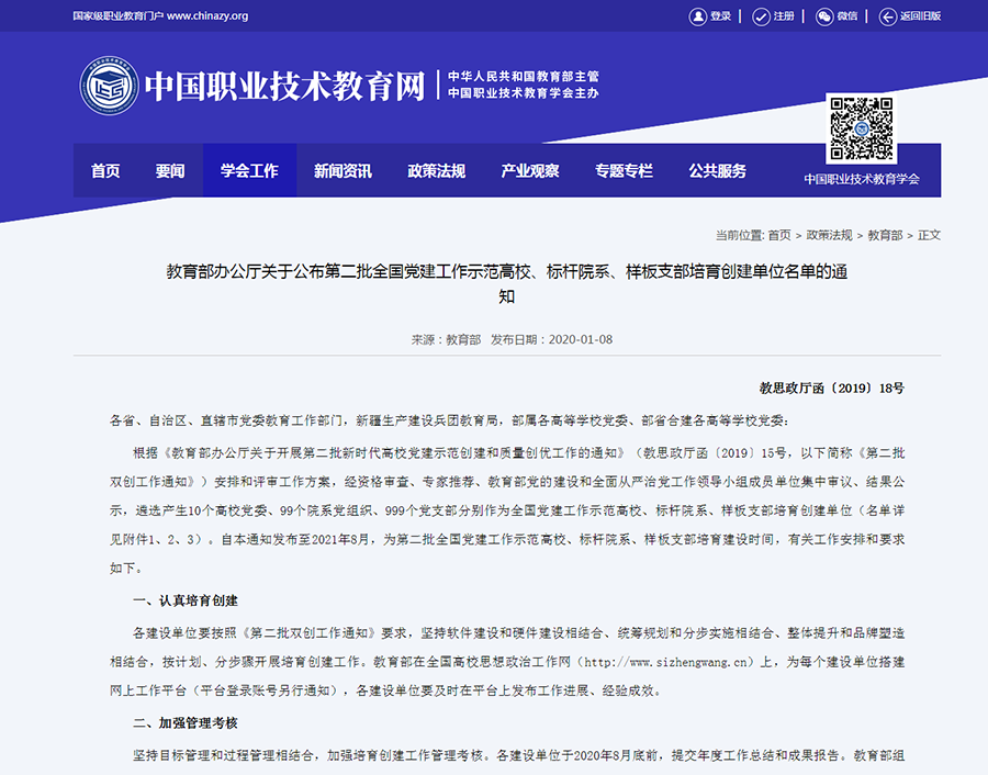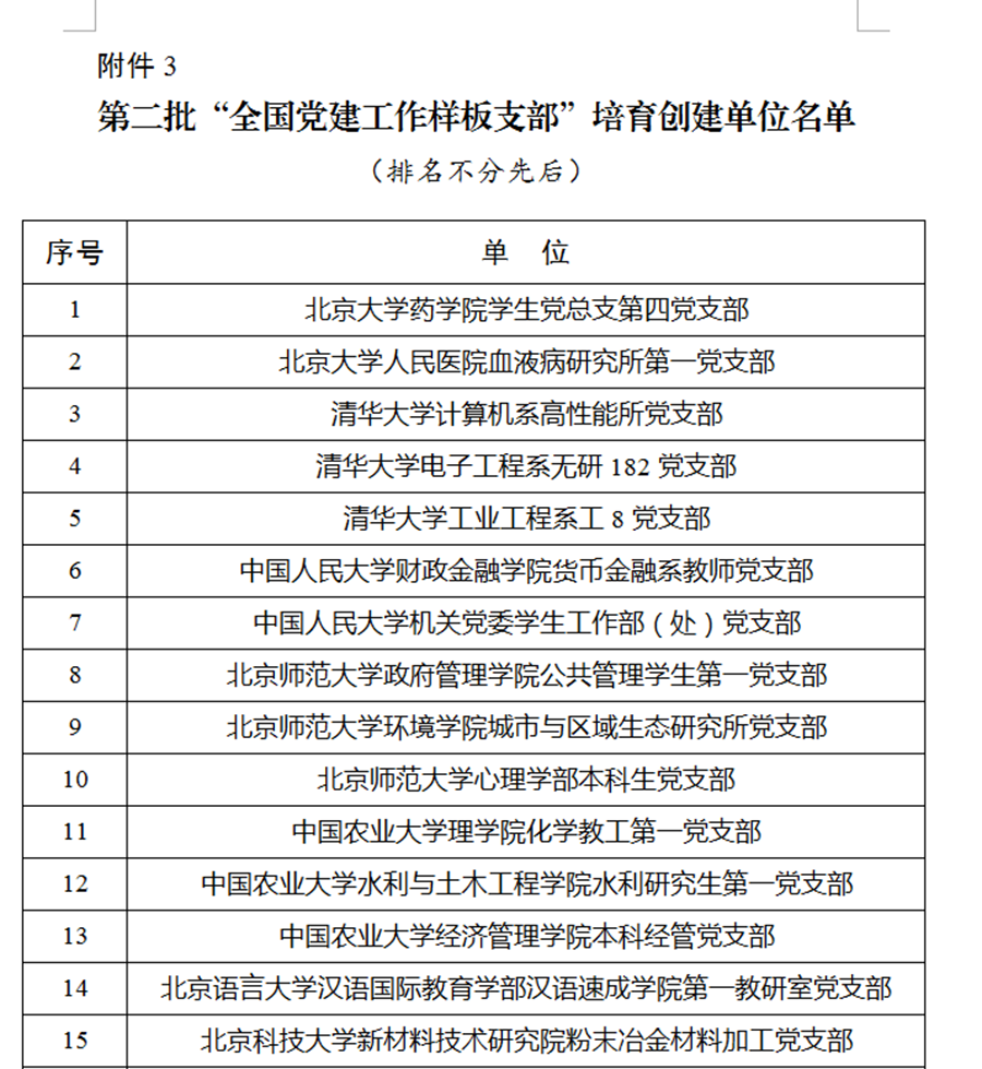 教育部办公厅关于公布第二批全国党建工作示范高校、标杆院系、样板支部培育创建单位名单的通知:http://www.chinazy.org/info/1014/2879.htm