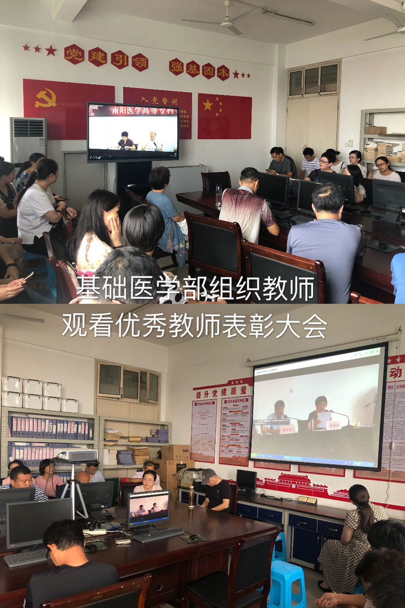 本网讯(文/行政办 毕大鹏)为庆祝第36个教师节的到来,9月9日下午3:00,学校采取线上主会场和线下分会场相结合的形式,隆重举行了2020年教师节表彰大会。大会主会场设在仲景西区1号办公楼5楼会议室,校领导全新明、逵应坤、张胜海、郭万周、范真、刘金云同志出席会议;优秀教师代表以及各相关处(室)、系(部、院)的负责同志参加会议。分会场设在各系(部、院),参加人员为全体专兼职教师、全体辅导员。其他党政和后勤教辅部门人员在各自办公室通过手机钉钉群直播进行了观看。会议由党委副书记逵应坤同志主持。