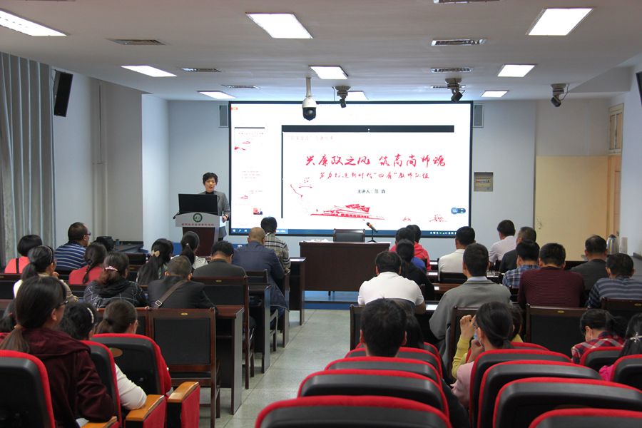 范真副校长党课的主题是:兴廉政之风、筑高尚师魂---努力打造新时代“四有”教师队伍。内容分为三个部分:一是深刻理解“四有”教师标准的内涵要义;二是充分把握建设“四有”教师队伍的重要意义;三是努力打造新时代“四有”教师队伍。