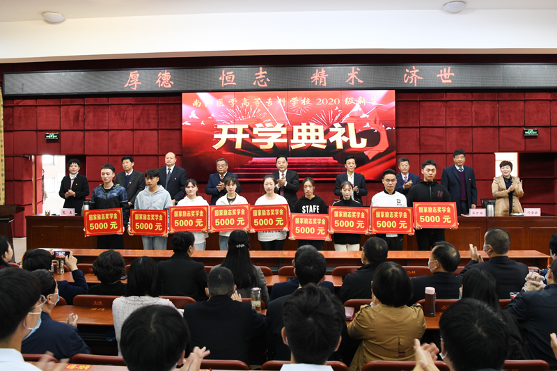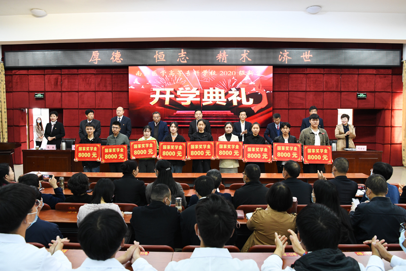 党委副书记逵应坤同志宣读了《博鱼官方网站,博鱼BOYU(中国)关于表彰2018—2019学年各类奖学金获得者的决定》,校领导对荣获国家奖学金、国家励志奖学金的学生代表进行了现场颁奖。医学技术系教师樊冰、2020级口腔医学4班学生伊博宵分别作为教师和新生代表,作了热情洋溢的发言。