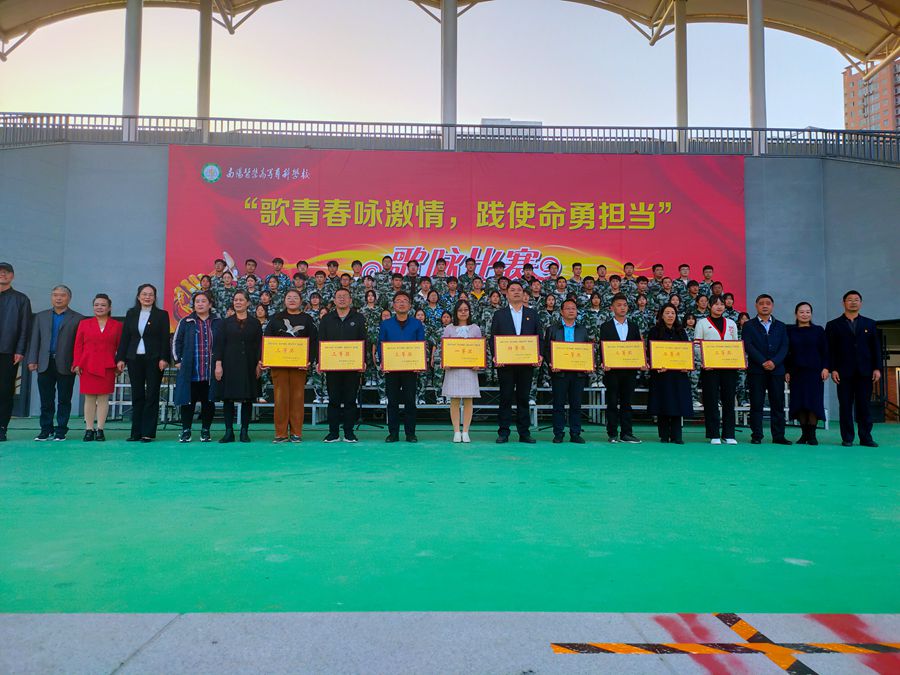 本网讯(文/学生处 皇甫乐观)为丰富学生军训生活,营造积极向上的校园文化氛围,增强新生的向心力和凝聚力,10月22日下午,我校2020年“歌青春咏激情,践使命勇担当”歌咏比赛在仲景西区新田径场举办。党委宣传部、校团委、离退休处、工会、公共教学部等部门负责人、老师出席并担任比赛评委。党委学工部、武装部领导、各系(部、院)党总支书记、副书记、学工办主任、新生辅导员及全体2020级新生共同观看了比赛。