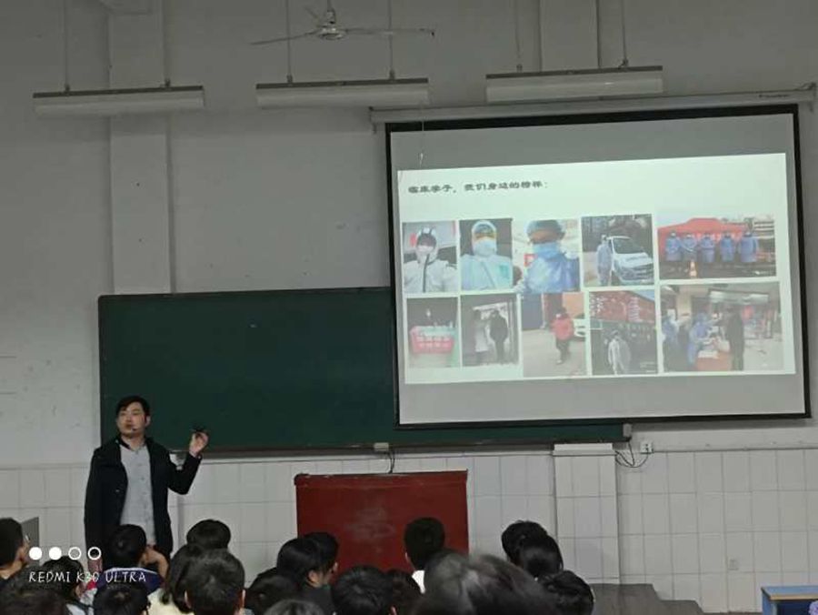 临床系总支以深入学习贯彻全书记在开学典礼上讲话精神为契机,扎实开展新生入学教育工作。10月8日新生报到后,利用军训间隙和晚自习时间,采用集中与分散相结合开展入学第一课、思想教育、防诈骗传销安全教育、新冠等传染病防治、抗疫英模事迹学习、职业规划教育、国防知识和应征入伍相关政策等专题学习。有效引领新生适应环境,树立目标,规划学业。(编审 李峰松)