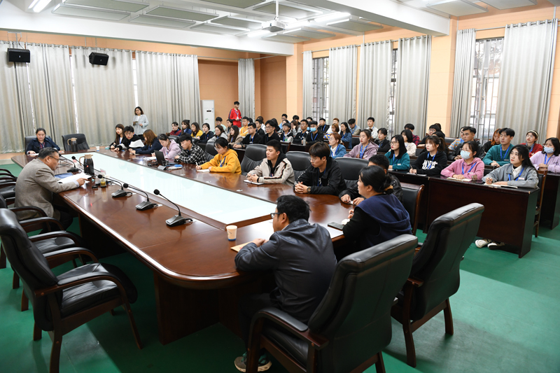 本网讯(文/校团委 马黎莉)11月12日下午,校党委副书记逵应坤在体育馆会议室为我校青马学院学员做理论培训。校团委全体成员、青马学院65位学员参加了此次培训。