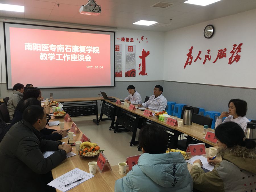 本网讯(文/针灸骨伤系 李明哲)1月4日下午,校党委委员、副校长范真在教务处长刘荣志、副处长王春成的陪同下,带领针灸骨伤系有关人员专程来到南阳医专南石康复学院参加院区教学工作座谈会。活动由南石医院康复医学科主任王建晖主持。