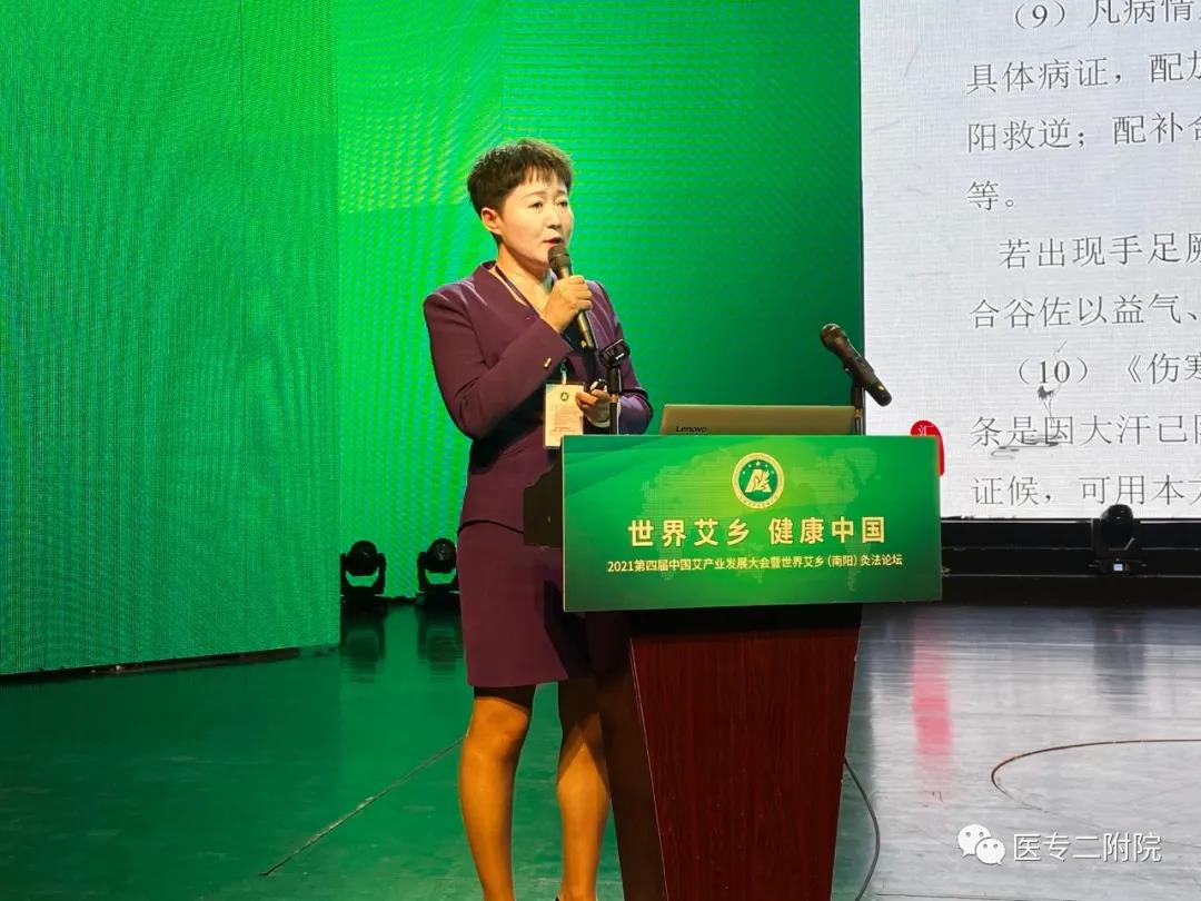 大会主论坛上,南阳医专党委委员、副校长范真并为相关企业颁发南阳艾产业学院理事单位证书。我校中医系教师、著名艾灸专家邢舸做了《脐灸在艾灸中的具体应用》讲座, 针灸骨伤系教授、李氏针灸第五代传人潘华做了题为《仲景方证的灸法临床应用》的报告。