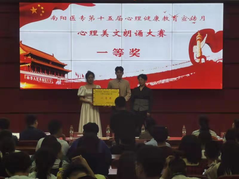 本网讯(文/国际教育学院 李冰)5月20日下午,由学生处主办、国际教育学院承办的南阳医专第十五届心理健康教育宣传月“红心向党,筑梦成长,青春绽放”心理美文诵读比赛决赛在仲景西区图书馆报告厅举行。校党委委员、副校长郭万周,学生处处长梁顺平及各系(部、院)书记、副书记、学工办主任、辅导员心理专干及学生代表等200余人参加活动。