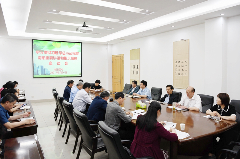 本网讯(文/宣传部 张旭斌)5月26日下午,我校在一号办公楼三楼会议室召开学习贯彻习近平总书记在南阳考察调研时重要讲话精神座谈会。校领导柳明伟、王立义、张国良、张胜海、田端、范真、刘金云出席会议,学校相关部门、系(部、院)负责人及部分师生代表参加会议。