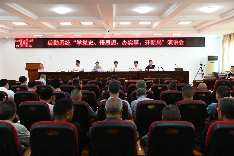 本网讯(文/总务处 刘洋)为庆祝建党100周年,推进党史学习教育,6月10日,在一号办公楼五楼会议室,我校后勤系统成功举办“学党史、悟思想、办实事、开新局”演讲会。校党委委员、副校长张国良出席,总务处处长刘洋、计财处处长徐飞,基建处副处长李留文、郭玉伟,总务处、计财处、基建处全体职工参加演讲会。刘洋主持会议。