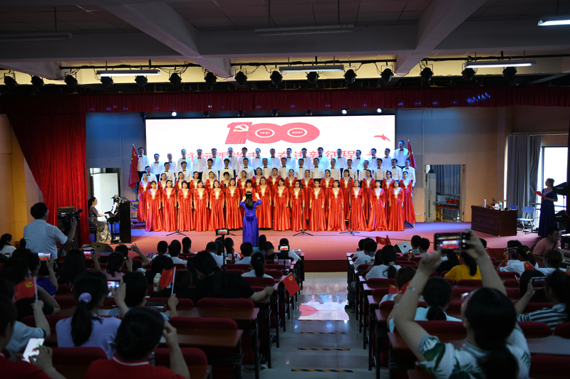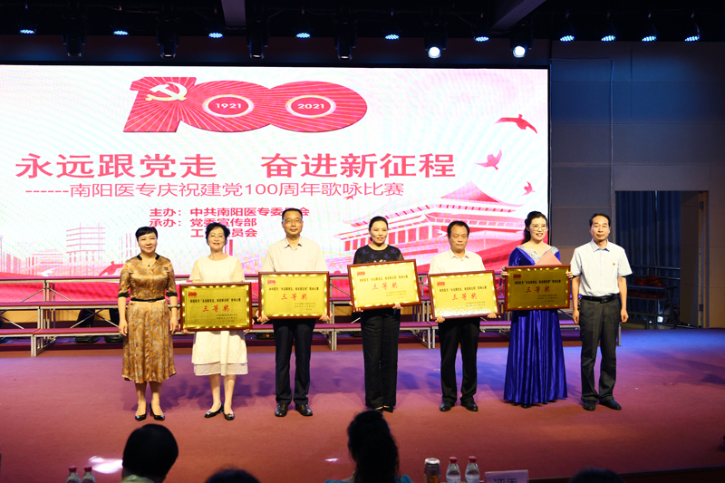 本网讯(文/校工会 朱东民)为进一步激发广大教职工爱党爱国爱社会主义的热情,6月16日下午,我校在仲景东区礼堂举行庆祝中国共产党成立100周年“永远跟党走·奋进新征程”歌咏比赛。校长王立义、副校长范真、纪委书记刘金云参加了合唱。副书记逵应坤、副校长张国良与师生共同观看了比赛。